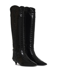 Tall Rae 40mm crocodile-embossed boots Highlights - Black - Calf leather - Embossed crocodile effect - High-shine finish - Gold-tone logo plaque - Pointed toe - Pull-on style - Knee-high - Branded leather insole - 40mm kitten heel - Leather sole Imported Composition Lining: Calf Leather 100% Outer: Leather 100% Sole: Calf Leather 100% Washing instructions Do Not Wash/Do Not Dry Clean