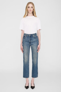 The Vin Jean is constructed from midweight rigid regenerative cotton denim without stretch in a bright, vintage blue wash. - Regenerative cotton denim - High rise - Zipper-fly closure - Straight leg - Cropped inseam - Clean-edge hem FIT + MEASUREMENTS High Rise Cropped Straight: This item runs small. We recommend taking one to two sizes up in this style for a true fit. Model is wearing a size 26. Model Measurements: Height 5′10", Bust 32", Waist 24", Hips 35" Product Measurements (Size 27): Inseam: 28", Rise: 12", Waist: 27", Hip: 38", Leg Opening: 15.3" MATERIAL + CARE 50% Cotton, 50% Organic Cotton Machine wash separately Made in Turkey