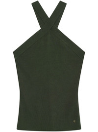 Brea knitted top Highlights - Dark green - Fine knit - Semi-sheer construction - Logo charm - Slim cut - Seam detailing - Halterneck - Straight hem Imported Composition Viscose 100% Washing instructions Hand Wash