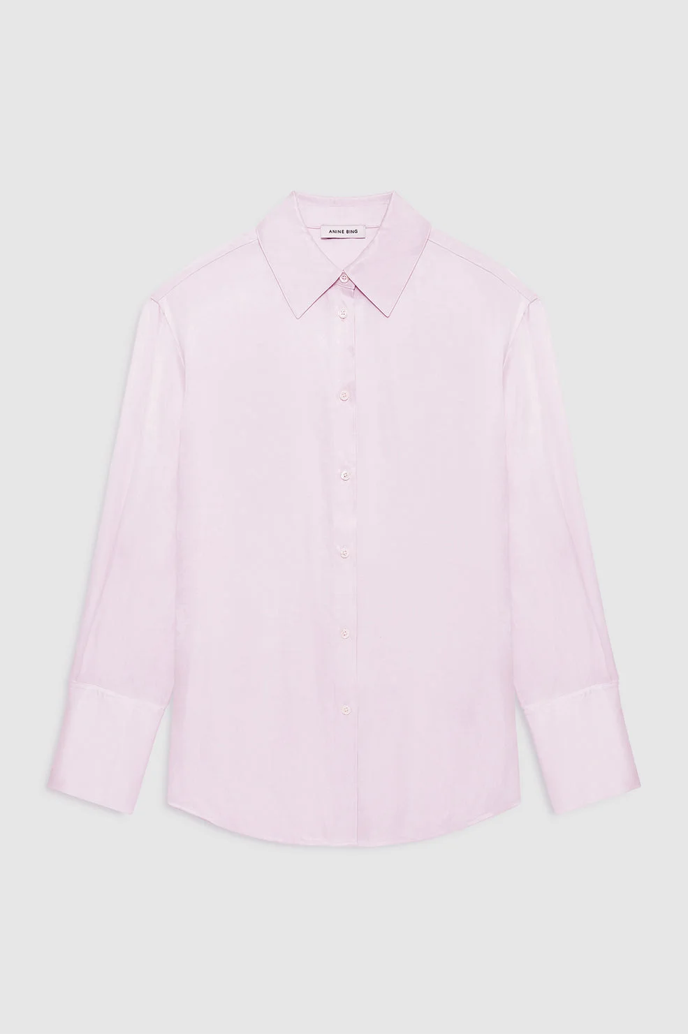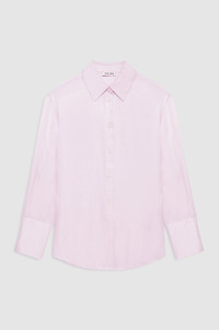 The Bridget Shirt is crafted from a fluid, sandwashed cupro blend that drapes effortlessly against the body. Cut in an oversized silhouette with soft structure, this powder pink blouse brings a subtle warmth to tailored looks while remaining versatile enough for everyday wear. - Sandwashed cupro blend - Oversized, relaxed silhouette - Self-covered buttons at center front - Classic pointed collar - Wide cuffs with double-button detailing - Powder pink seasonal colorway FIT + MEASUREMENTS Oversized Fit: Take one size down if a closer fit is preferred. Model is wearing a size S. Model Measurements: Height: 5'8", Bust: 31", Waist: 25.5", Hips: 35.5" Product Measurements (Size S): Length: 30", Bust: 46.5", Sleeve Length from Center Back: 33.5" MATERIAL + CARE 71% Tencel 29% Rayon Dry clean Made in China