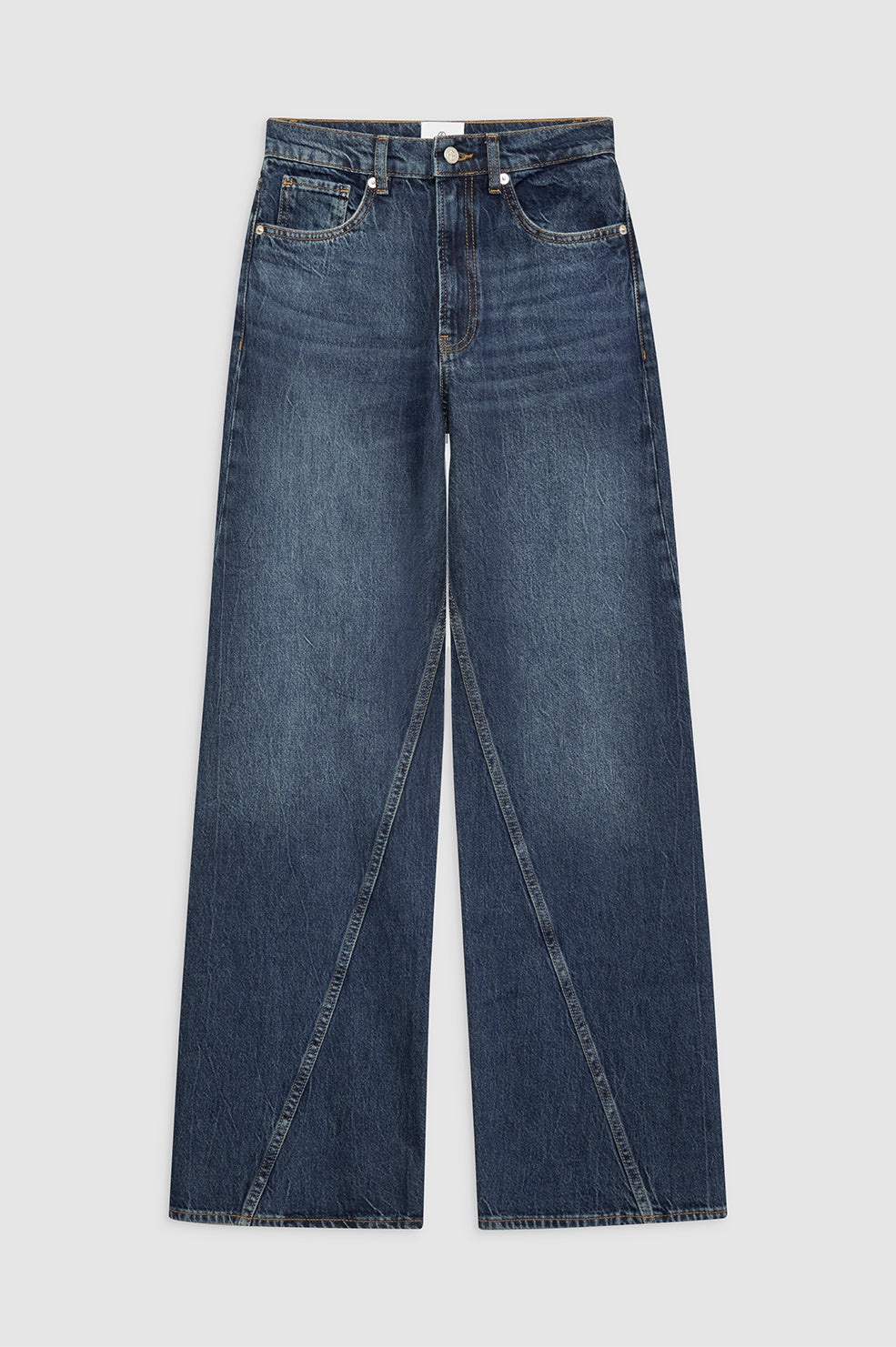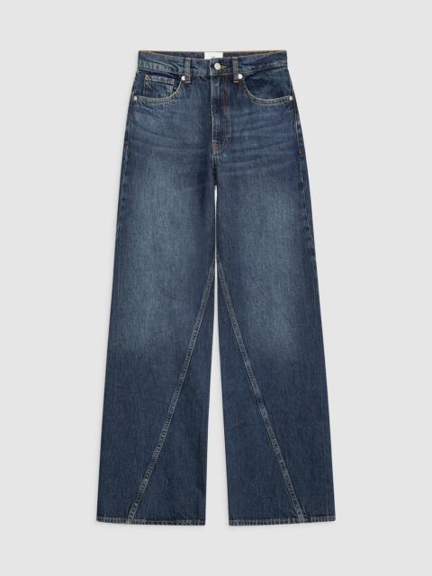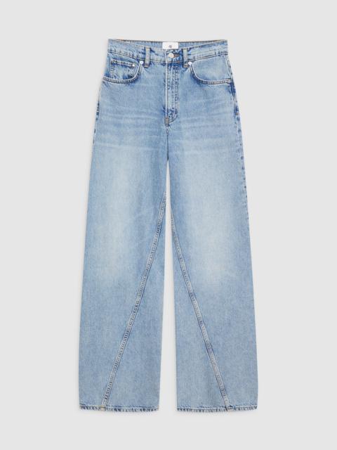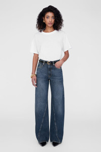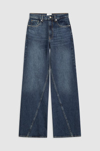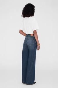The Brie Jean features a relaxed silhouette constructed from lightweight rigid cotton denim without stretch featuring a soft hand and slight drape in a dark blue wash with subtle marbling throughout. - Rigid cotton denim - High rise - Button-fly closure - Baggy, wide leg - Long inseam - Clean-edge hem - Five-pocket design - Twisted seam detailing FIT + MEASUREMENTS High Rise Wide: Take your true size. If you are in between sizes, we recommend taking one size up in this style. Model is wearing a size 24. Model Measurements: Height: 5'9", Bust: 32.5", Waist: 22.5", Hips: 34.5" Product Measurements (Size 27): Inseam: 33", Rise: 12.5", Waist: 29", Hip: 41.3", Leg Opening: 22.3" MATERIAL + CARE 100% Cotton Machine wash separately Made in Turkey