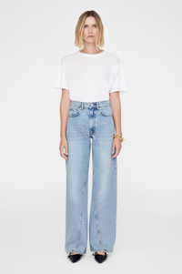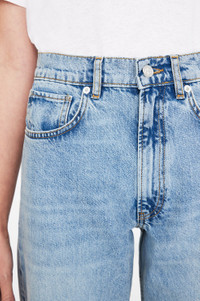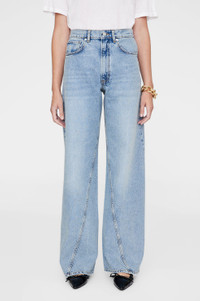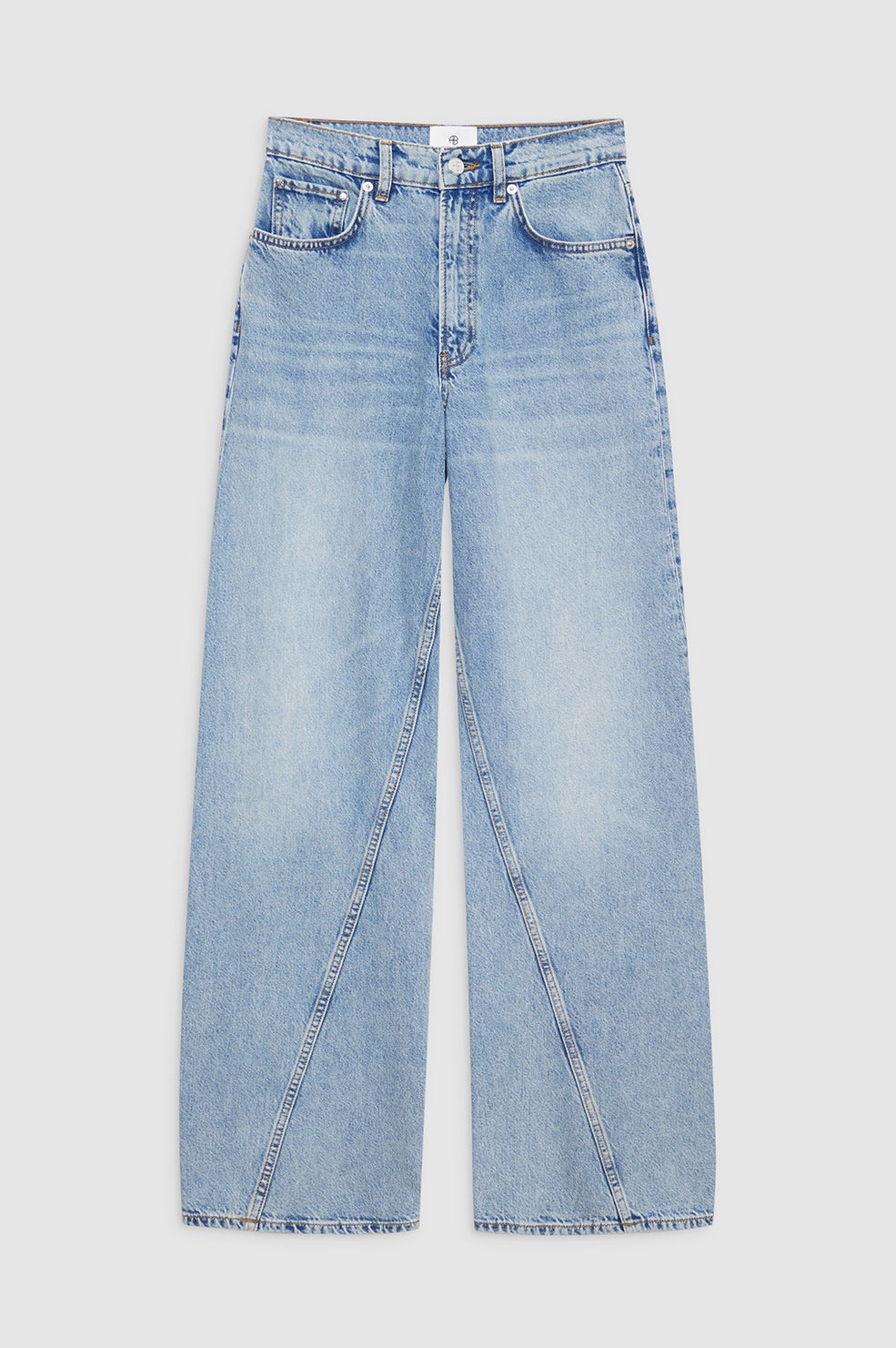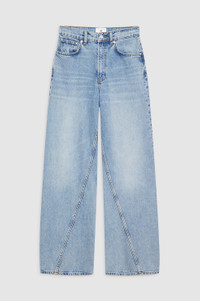 The Brie Jean features a relaxed silhouette constructed from light-to-midweight rigid cotton denim without stretch featuring a soft hand and slight drape in a medium vintage blue wash with subtle veining throughout. - Rigid cotton denim - High rise - Button-fly closure - Baggy, wide leg - Long inseam - Clean-edge hem - Five-pocket design - Twisted seam detailing FIT + MEASUREMENTS High Rise Wide: Take your true size. Model is wearing a size 25. Model Measurements: Height: 5'9.5", Bust: 32", Waist: 24.5", Hips: 33" Product Measurements (Size 27): Inseam: 33", Rise: 12.5", Waist: 29", Hip: 41.3", Leg Opening: 22.3" MATERIAL + CARE 100% Cotton Machine wash separately Made in Turkiye