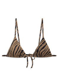 Brielle bikini top Highlights - Light brown - Recycled nylon blend - Tiger print - Thin shoulder straps - Triangle cup - Rear tie fastening - Be mindful to try on swimwear over your own garments. Imported Composition Recycled Nylon 85%, Spandex/Elastane 15%