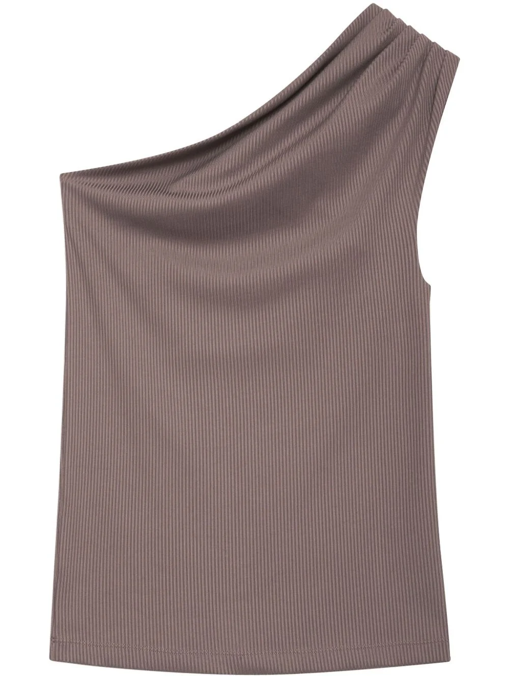 Camila one-shoulder ribbed top Highlights - Taupe brown - Stretch-design - Ribbed - One-shoulder - Sleeveless - Straight hem Imported Composition Nylon 92%, Spandex/Elastane 8% SIZE & FIT Measurement LENGTH 21.25 in(54 cm) BUST 25.19 in(64 cm) Washing instructions Machine Wash