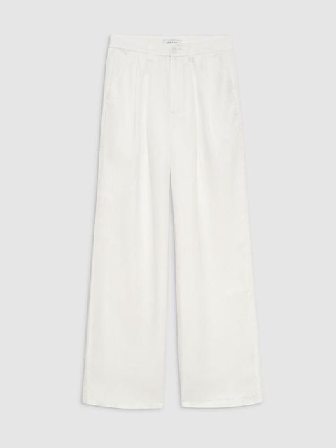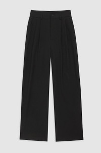 The Carrie Pant is a wide-leg trouser elevated in a midweight, viscose-wool blend with a soft twill texture and natural drape. This full-length style is unlined and features double-pleated front detailing, five functional belt loops, two back welt pockets, slanted front pockets, and a single button zip-front closure. The Carrie Pant is cut for a high-rise fit with a true waist, wide leg, and full-length inseam. Please note: This fabric is heavier than the Carrie Pant in Black Linen Blend. For a more relaxed fit, take one size up. FIT + MEASUREMENTS The Carrie Pant is cut for a high-rise fit with a true waist, wide leg, and full-length inseam. Please note: This fabric is heavier than the Carrie Pant in Black Linen Blend. For a more relaxed fit, take one size up. Model is wearing a size 32. Model Measurements: Height: 5'10", Bust: 31.5", Waist: 24", Hips: 34" Product Measurements (Size 36): Inseam: 33", Rise: 12.3", Waist: 28.5", Hip: 41.5", Leg Opening: 21" MATERIAL + CARE 86% Viscose, 11% Virgin Wool, 3% Elastane Made in Turkey