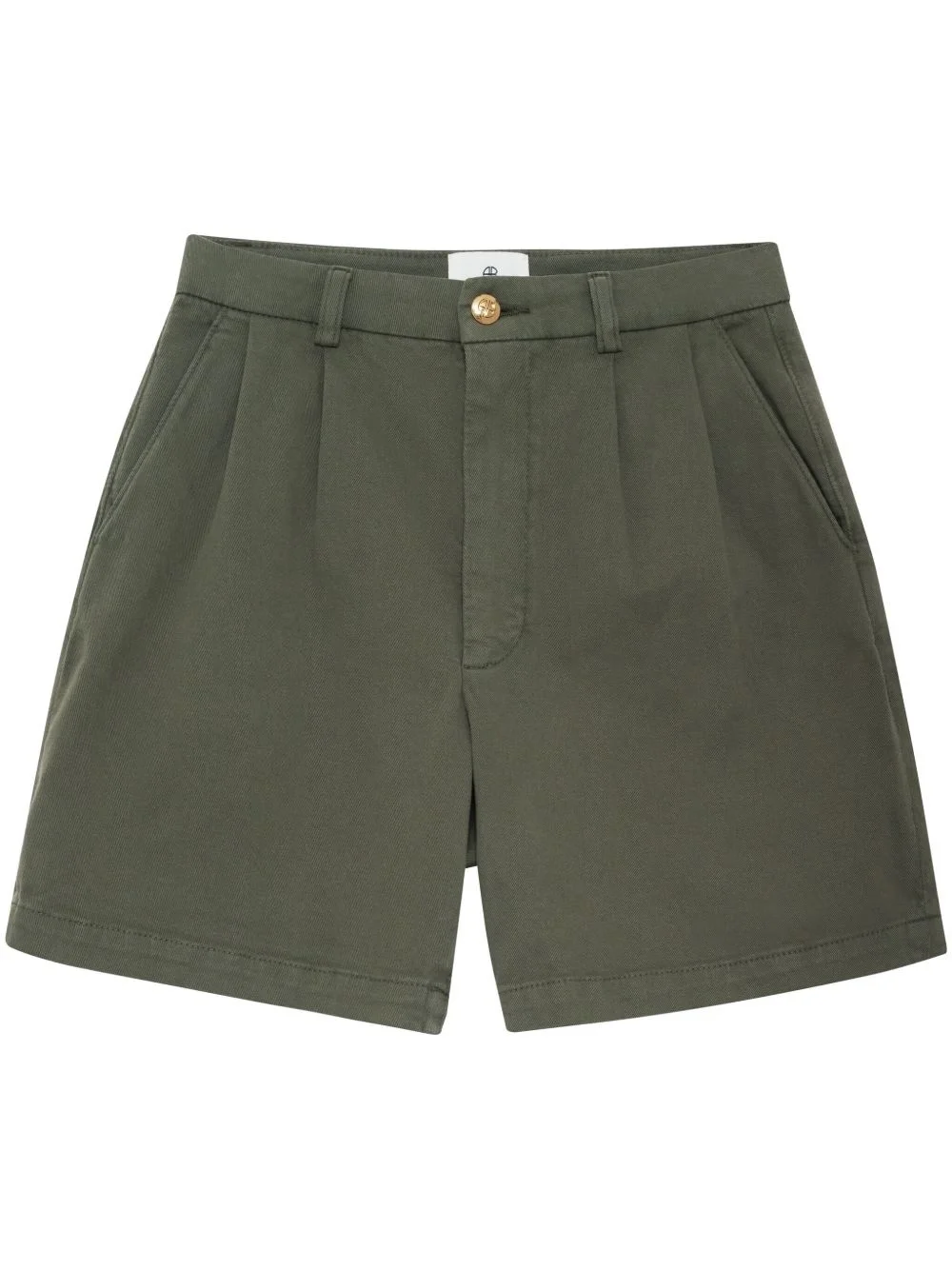 Carrie pleated shorts Highlights - Olive green - Cotton blend - Twill weave - Logo-engraved buttons - Pleat detailing - Belt loops - Two side slit pockets - Two rear welt pockets - Above-knee length Imported Composition Cotton 98%, Spandex/Elastane 2% Washing instructions Machine Wash