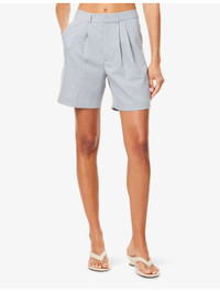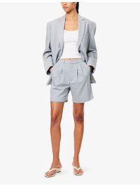 PRODUCT DETAILS - Anine Bing woven shorts - 54% polyester, 22% viscose, 22% wool, 2% elastane - Button and zip-fly fastening - Relaxed fit, tailored, belt loops, flat waistband, side pockets, front pleats, back welt pockets - Dry clean - Size small: rise 12in / 30cm, inside leg 6in / 15cm, leg opening 22in / 55.8cm - Model is 5ft 10in/1.78m and wears a size small - Midweight, non-stretch Ref: R04433419