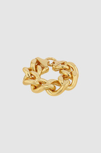 A large, chunky chain bracelet crafted from 14k gold-plated brass. Complete with a round hinge push clasp engraved with subtle ANINE BING branding. FIT + MEASUREMENTS Model Measurements: Height: 5'9", Bust: 32.5", Waist: 22.5", Hips: 34.5" Product Measurements (Size XS/S): Length: 7.7", Width: 1.1" MATERIAL + CARE 14k Gold Plated Brass Spot clean Made in China