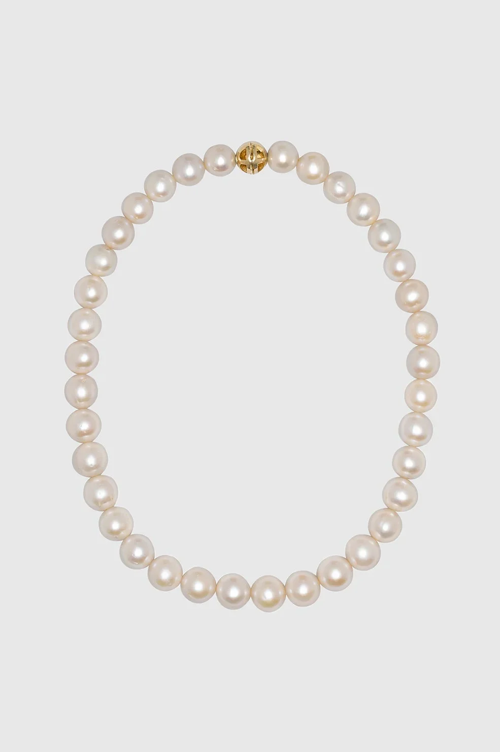 An elegantly timeless heirloom to wear day or night, the Classic Pearl Choker features a single strand of rounded freshwater pearls fitting close and high at the neckline. Secured by a branded screw closure that's seamlessly integrated for a consistent look. FIT + MEASUREMENTS Product Measurements: Length: 14.6", Width of Pearl: 0.4" MATERIAL + CARE 14k Yellow Gold with Freshwater Pearls Spot clean Made in Turkey