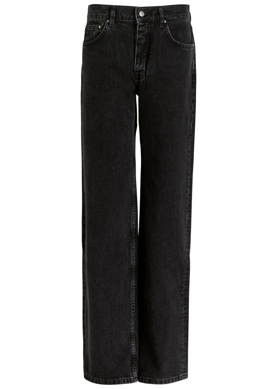 Info & Care Anine Bing denim jeans; High-rise fit, wide-leg cut, belt loops, five pockets, designer plaque at back, washed finish Partially concealed button fastenings at front; 80% cotton, 20% organic cotton Machine wash cold inside out to avoid colour transfer Size & Fit Front rise: 11 inches/ 28cm Inside leg length: 34 inches/ 86.5cm Midweight Model is 5'9"/ 175cm and wears a size;W27