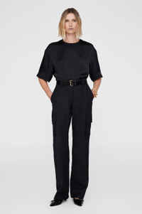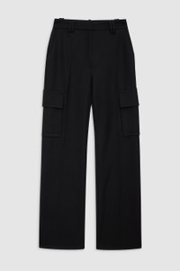 A utility-inspired bottom constructed from a midweight textured wool blend with a dry, slick hand. The Dayton Cargo Pant is half lined to the knee and features a relaxed, straight wide leg with oversized cargo pockets and back patch pockets. Complete with a front zip opening with a hook and bar closure and functional belt loops. The Dayton Cargo Pant is cut for a high-waisted, relaxed fit with a straight wide leg and full-length inseam. Take your true size. FIT + MEASUREMENTS The Dayton Cargo Pant is cut for a high-waisted, relaxed fit with a straight wide leg and full-length inseam. Take your true size. Model is wearing a size 32/2. Model Measurements: Height: 5'9.5", Bust: 32", Waist: 24.5", Hips: 33" Product Measurements (Size 36/6): Inseam: 33", Rise: 11.5", Waist: 29.5", Hip: 40.5", Leg Opening: 19" MATERIAL + CARE 52% Polyester, 48% Wool Dry clean Made in China