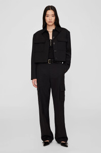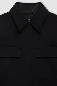 A modern take on an iconic safari jacket silhouette. The Dayton Jacket is constructed from a midweight, textured wool blend with a dry, slick hand. Its utilitarian silhouette is fully lined and features two patch pockets at the chest and a hidden placket down the center front and at each wrist. The Dayton Jacket is cut for a cropped, boxy fit. Take your true size. FIT + MEASUREMENTS The Dayton Jacket is cut for a cropped, boxy fit. Take your true size. Model is wearing a size S. Model Measurements: Height: 5'9.5", Bust: 29.5", Waist: 23", Hips: 34.5" Product Measurements (Size S): Length: 20", Bust: 41.5", Sleeve Length from Center Back: 33.5" MATERIAL + CARE 52% Polyester, 48% Wool Dry clean Made in China