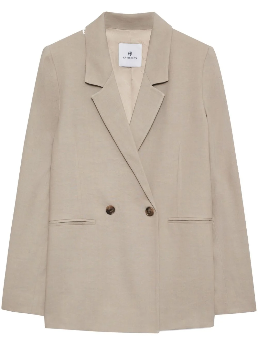 Diana double-breasted blazer Highlights - Sand beige - Linen blend - Notched lapels - Double-breasted button fastening - Two front welt pockets - Long sleeves - Straight hem - Central rear vent Imported Composition Linen/Flax 54%, Viscose 45%, Spandex/Elastane 1% Washing instructions Dry Clean Only