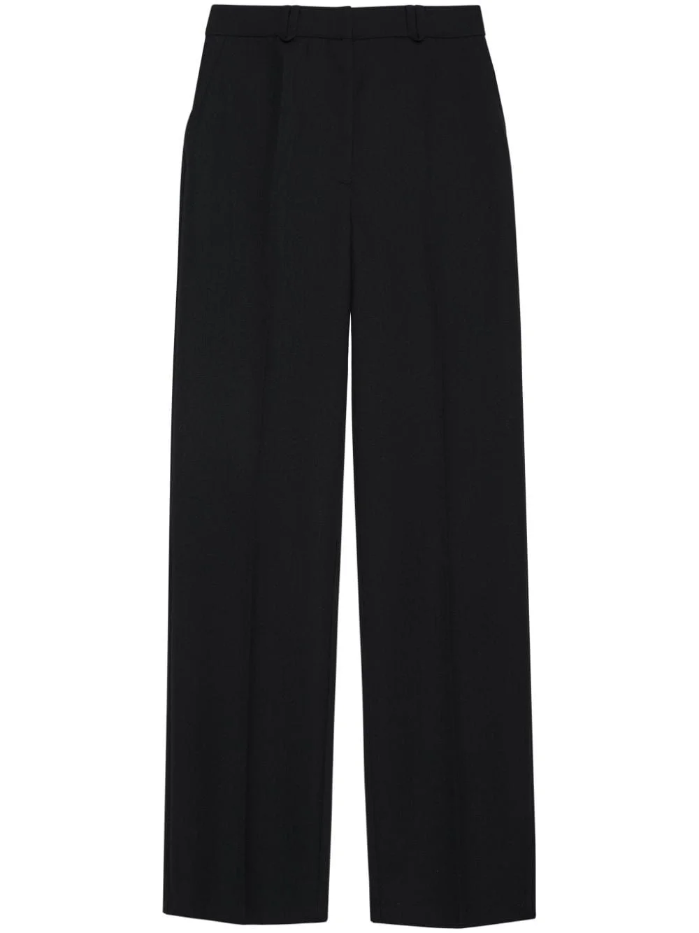 Drew tailored trousers Highlights - Black - Pressed crease - Belt loops - Concealed front fastening - Slip pockets to the sides - Two rear welt pockets - Wide leg - Split cuffs Imported Composition Polyester 52%, Wool 48% Washing instructions Machine Wash
