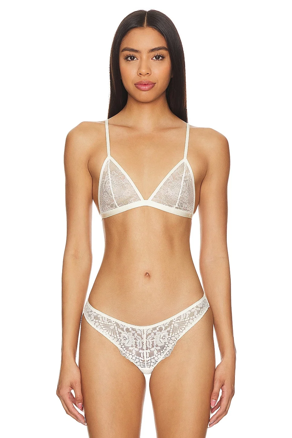 - 100% nylon - Made in Turkey - Machine wash - Unpadded cups - Back hook and eye closure - Adjustable shoulder straps - Sheer lace fabric - Revolve Style No. ANIN-WI41 - Manufacturer Style No. A-10-0220-150