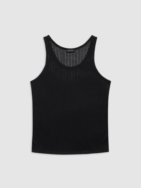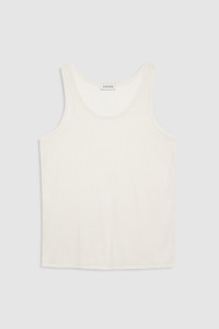 The Euguen Tank is an everyday basic made from a lightweight and slightly sheer drop needle rib fabrication in snow white. - Viscose blend - Relaxed, boyfriend-inspired fit - Scoop-front neckline - Tonal embroidered monogram FIT + MEASUREMENTS Relaxed, Boyfriend-Inspired Fit: Take your true size. Model is wearing a size S. Model Measurements: Height: 5'9.5", Bust: 32.5", Waist: 24.5", Hips: 35" Product Measurements (Size S): Length: 25.3”, Bust: 17.5" MATERIAL + CARE 80% Polyester, 20% Viscose Machine wash Made in China
