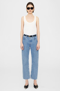 The cropped, boyfriend-inspired Gavin Jean is constructed from heavyweight rigid cotton denim without stretch in a clean blue shade that has been stone washed for a vintage-inspired look and feel. - Rigid cotton denim - Relaxed-straight fit - Mid rise - Button-fly closure - Cropped inseam - Clean-edge hem FIT + MEASUREMENTS Mid Rise Relaxed Straight: Take your true size. Model is wearing size 24. Model Measurements: Height: 5'10.5", Bust: 31", Waist: 24", Hips: 34" Product Measurements (Size 27): Inseam: 28", Rise: 11.5", Waist: 30.5", Hip: 40.25", Leg Opening: 17" MATERIAL + CARE 100% Cotton Machine wash separately Made in Turkey