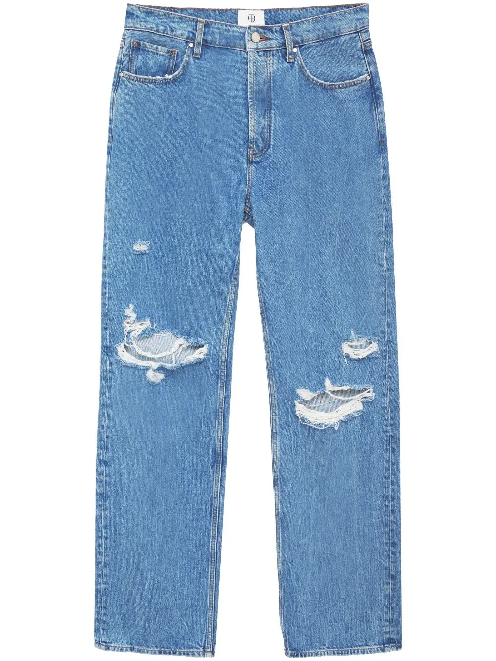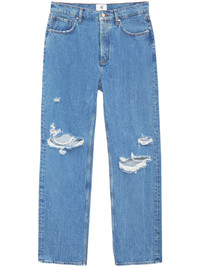 Gio high-rise straight jeans These ANINE BING's Gio jeans are a menswear-inspired design and are constructed from a rigid organic cotton blend. The blue-hued garment sits high on the waist and falls to a straight leg that is enhanced by ripped detailing, for a vintage look. Highlights - Light blue - Organic cotton blend - Straight leg - Ripped detailing - Logo patch to the rear - High waist - Belt loops - Front button and zip fastening - Classic five pockets Imported Composition Body: Organic Cotton 50%, Cotton 50%