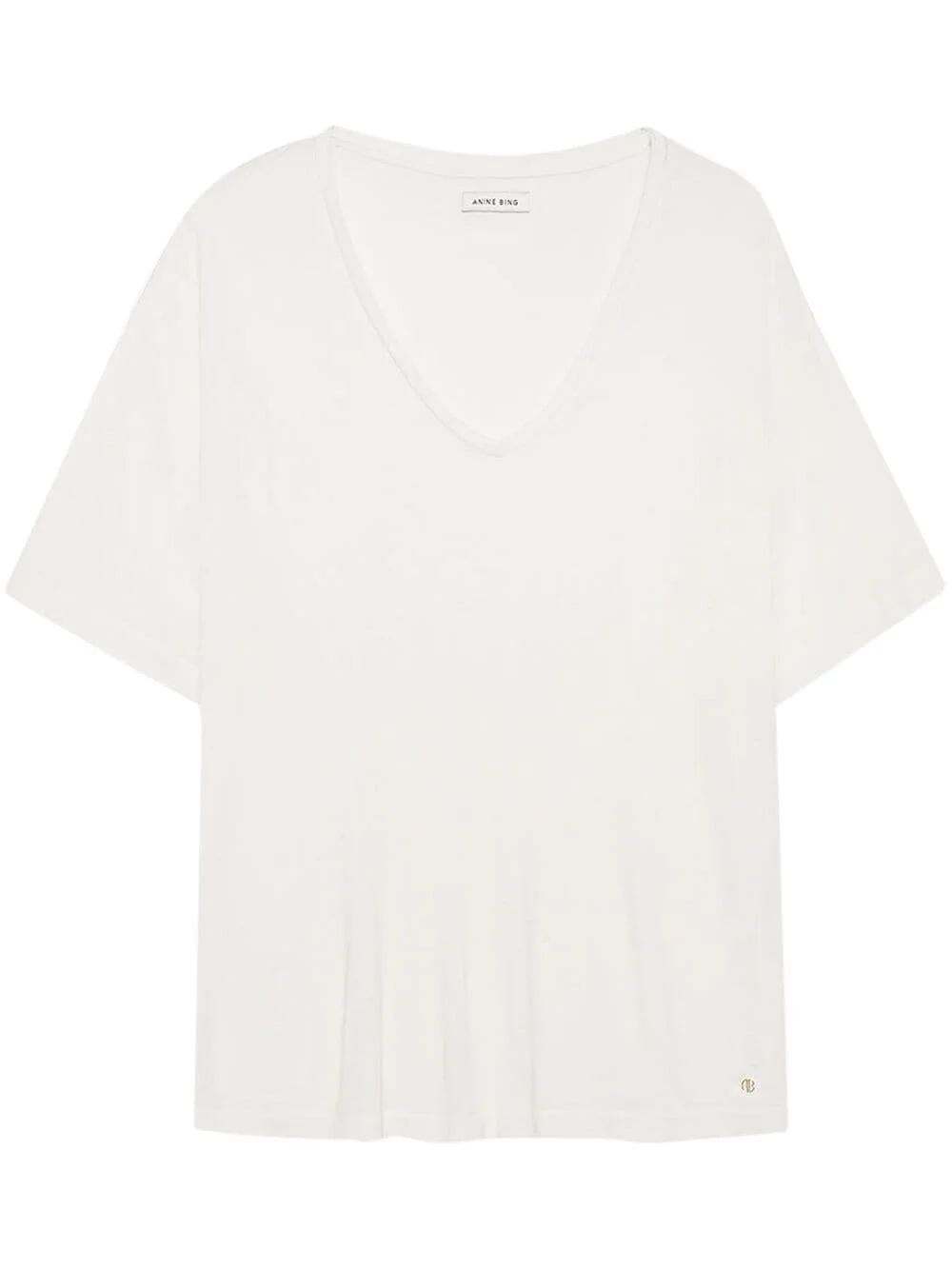 V-neck short-sleeve T-shirt Highlights - Off-white - Modal/cashmere blend - V-neck - Short sleeves - Straight hem Imported Composition Modal 90%, Cashmere 10% Washing instructions Machine Wash