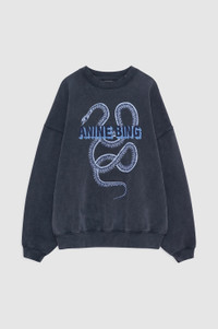 An oversized hoodie made from midweight 100% cotton French terry in washed black. - Cotton French terry - Relaxed boyfriend fit - Kangaroo pocket - Faded ANINE BING snake screen print graphic at front Please note: This item is individually handcrafted and will vary in color or appearance. FIT + MEASUREMENTS Relaxed Boyfriend Fit: Take your true size. Model is wearing a size S. Model Measurements: Height: 5'9", Bust: 30", Waist: 23", Hips: 34" Product Measurements (Size S): Length: 25.8", Bust: 24.4", Sleeve Length from Center Back: 33.3" MATERIAL + CARE 100% Cotton Machine wash separately Made in Turkiye