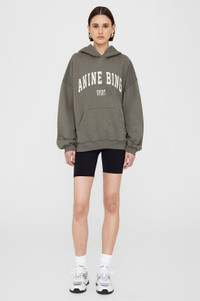 The Harvey Sweatshirt is an oversized hoodie made from midweight 100% cotton fleece in a dusty olive colorway. It features a screen-printed ANINE BING Sport graphic at the chest in cream collegiate-inspired lettering and subtle grinding along the edges of its hood, sleeve cuffs, and waistband for a vintage look. Includes a functional front kangaroo pocket. The Harvey Sweatshirt is cut for a relaxed, menswear-inspired fit. Take your true size. Please note: This item is individually handcrafted and will vary in color or appearance. FIT + MEASUREMENTS The Harvey Sweatshirt is cut for a relaxed, menswear-inspired fit. Take your true size. Model is wearing a size S. Model Measurements: Height: 5'10.5", Bust: 31", Waist: 24", Hips: 34" Product Measurements (Size S): Length: 25.8", Bust: 24.4", Sleeve Length: 20.5" MATERIAL + CARE 100% Cotton Machine wash Made in Turkey