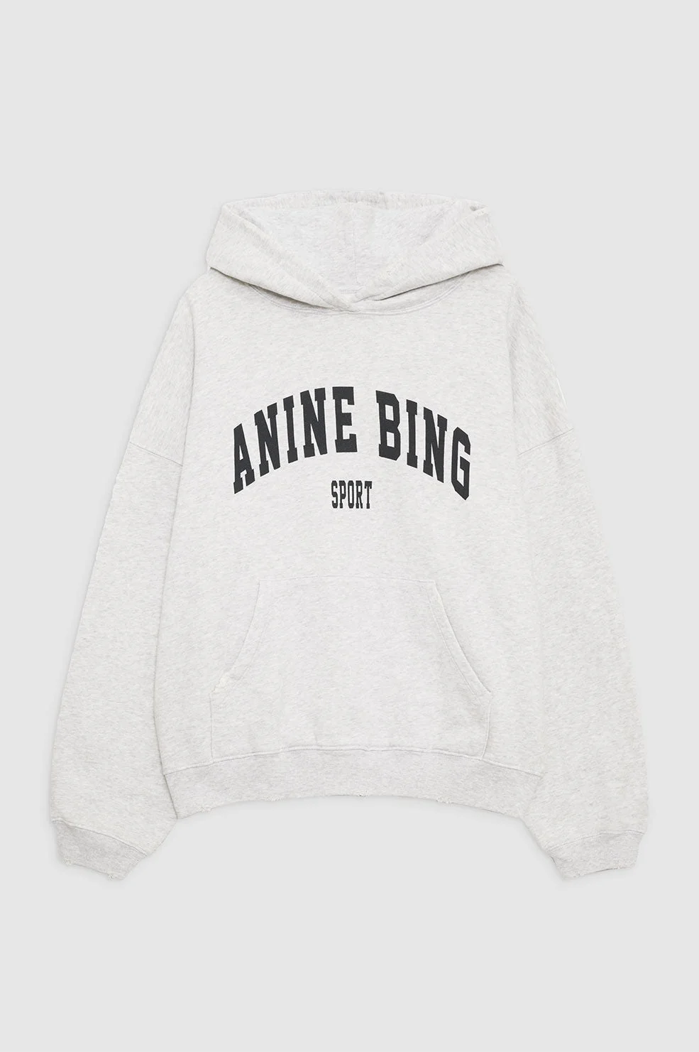The Harvey Sweatshirt is an oversized hoodie made from midweight 100% cotton fleece in heather grey. It features an ANINE BING Sport graphic at the chest in authentic collegiate lettering and subtle grinding along the edges of its hood, sleeve cuffs, and waistband for a vintage-inspired look. Includes a functional front kangaroo pocket. The Harvey Sweatshirt is cut for a relaxed, menswear-inspired fit. Take your true size. Please note: This item is individually handcrafted and will vary in color or appearance. FIT + MEASUREMENTS The Harvey Sweatshirt is cut for a relaxed, menswear-inspired fit. Take your true size. Model is wearing a size S. Model Measurements: Height: 5'10.5", Bust: 31", Waist: 24", Hips: 34" Product Measurements (Size S): Length: 25.8", Bust: 24.4", Sleeve Length: 20.5" MATERIAL + CARE 100% Cotton Machine wash Made in Turkey