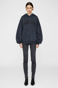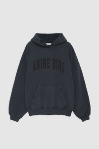 The Harvey Sweatshirt is an oversized hoodie made from midweight 100% cotton fleece. It features an ANINE BING Sport graphic at the chest in tonal collegiate lettering and subtle grinding along the edges of its hood, sleeve cuffs, and waistband for a vintage look. Includes a functional front kangaroo pocket. The Harvey Sweatshirt is cut for a relaxed, menswear-inspired fit. Take your true size. Please note: This item is individually handcrafted and will vary in color or appearance. FIT + MEASUREMENTS The Harvey Sweatshirt is cut for a relaxed, menswear-inspired fit. Take your true size. Model is wearing a size S. Model Measurements: Height: 5'9", Bust: 32", Waist: 24", Hips: 35" Product Measurements (Size S): Length: 25.8", Bust: 24.4", Sleeve Length: 20.5" MATERIAL + CARE 100% Cotton Machine wash Made in Turkey