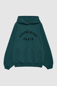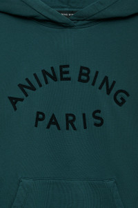 The Harvey Sweatshirt is an oversized hoodie made from midweight 100% cotton fleece. It features an ANINE BING Sport graphic at the chest in tonal lettering and subtle grinding along the edges of its hood, sleeve cuffs, and waistband for a vintage look. Includes a functional front kangaroo pocket. The Harvey Sweatshirt is cut for a relaxed, menswear-inspired fit. Take your true size. Please note: This item is individually handcrafted and will vary in color or appearance. FIT + MEASUREMENTS Model is wearing a size S. Model Measurements: Height: 5'9.5", Bust: 32.5", Waist: 24.5", Hips: 35" Product Measurements (Size S): Length: 25.8", Bust: 24.4", Sleeve Length: 20.5" MATERIAL + CARE 100% Cotton Machine wash Made in Turkey