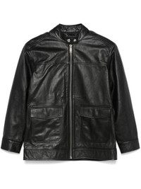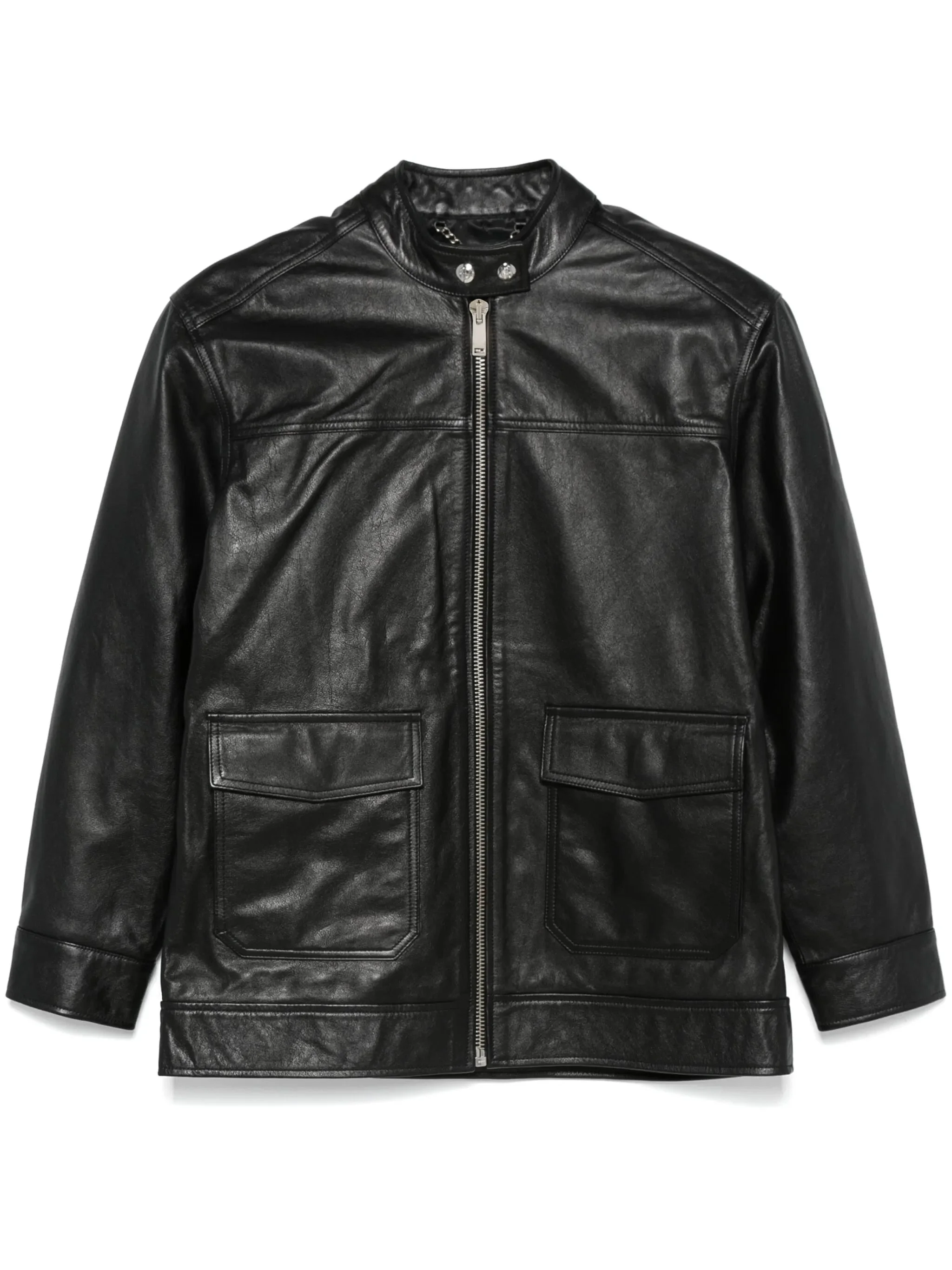 black calf leather smooth grain front zip fastening press-stud fastening collar long sleeves with press-stud fastening cuffs two front flap pockets full lining straight hem - Color: BLACK - Made in: Turkey - Designer Style ID: A-01-10189 000 Composition and care Outer Composition Calf Leather: 100.0%, Lining Composition Polyester: 100.0%