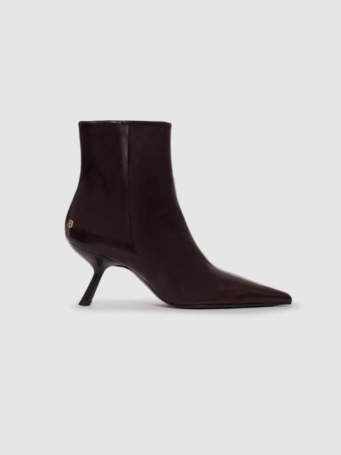 Modern sock booties made from 100% cow leather in a slight sheen. The Hilda Boots' sleek construction features a sharp pointed toe, low slanted heel, and high-shine outsole. Accented with gold-tone ANINE BING hardware at each heel. - Made in Portugal FIT + MEASUREMENTS True to size. If you are between sizes, we recommend taking the next size up. Model is wearing a size 39. Model Measurements: Height: 5'9.5", Bust: 32", Waist: 24.5", Hips: 33" Product Measurements (Size 37): Sole Length: 9.7”, Sole Width: 2.6”, Heel Height: 3”, Shoe Height: 11” MATERIAL + CARE 100% Cow Leather Spot clean Made in Portugal