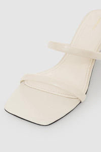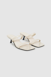 A refined sandal made from smooth and supple 100% leather in bone. The Hilda Mule Sandals' simple construction features padded straps, an angular kitten heel, cushioned insoles, and a high-shine leather outsole. True to size. If you are between sizes, we recommend taking the next size up. FIT + MEASUREMENTS True to size. If you are between sizes, we recommend taking the next size up. Model is wearing a size 40. Model Measurements: Height: 5'9", Bust: 32.5", Waist: 22.5", Hips: 34.5" Product Measurements (Size 37): Heel Height: 1.9", Sole Length: 8.5", Sole Width: 3.3" MATERIAL + CARE 100% Lamb Leather Spot clean Made in Portugal