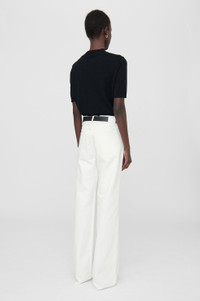 The Hugh Jean is a relaxed, '90s-inspired style constructed from midweight rigid organic cotton denim without stretch in a light ivory wash. - Organic cotton denim - Relaxed fit - Mid rise intended to be worn low on the hips - Button-fly closure - Wide leg - Long inseam - Raw-edge hem FIT + MEASUREMENTS Mid Rise Relaxed Wide: A raw-edge hem allows for easy tailoring if alterations are desired. Take your true size. If you are in between sizes, we recommend taking one size up in this style. Model is wearing a size 24. Model Measurements: Height: 5'9", Bust: 30", Waist: 23", Hips: 34" Product Measurements (Size 27): Inseam: 34", Rise: 11.3", Waist: 31", Hip: 40", Leg Opening: 21" MATERIAL + CARE 50% Organic Cotton, 50% Cotton Machine wash separately Made in Turkey