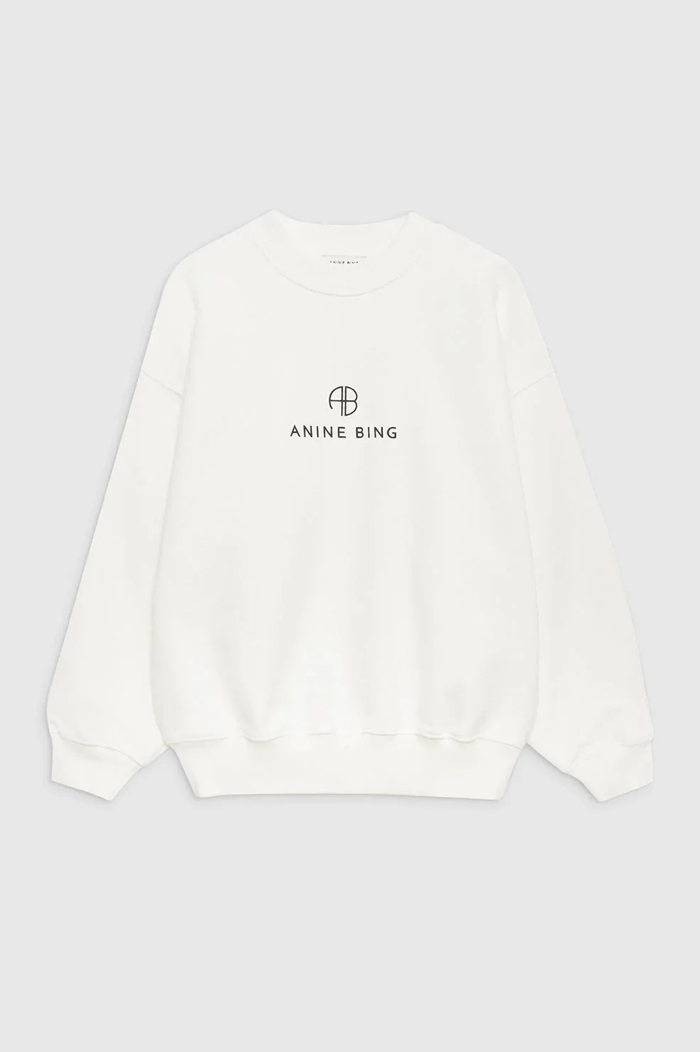 The Jaci Sweatshirt Monogram is an oversized crewneck pullover made from midweight cotton fleece in ivory. This cozy separate features an ANINE BING logo graphic in contrast black screen printed on the front. The Jaci Sweatshirt is cut for an oversized, relaxed fit with a slightly wider body and sleeves than the Ramona Sweatshirt. Take your true size. FIT + MEASUREMENTS The Jaci Sweatshirt is cut for an oversized, relaxed fit with a slightly wider body and sleeves than the Ramona Sweatshirt. Take your true size. Model is wearing a size S. Model Measurements: Height: 5'10", Bust: 32", Waist: 23", Hips: 34" Product Measurements (Size S): Length: 24.8", Bust: 26", Sleeve Length from Center Back: 31.5" MATERIAL + CARE 85% Cotton, 15% Polyester Machine wash separately Made in Turkey