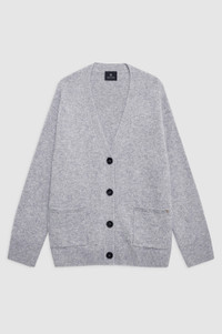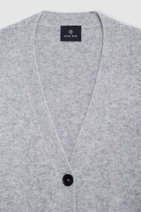 The Jackson Cardigan is crafted in midweight, ultra-soft 100% cashmere in heather grey. - Cashmere - Boxy fit - Long raglan sleeves - Horn buttons - Two front patch pockets FIT + MEASUREMENTS Boxy Fit: Take your true size, or size down for a closer fit. Model is wearing a size S. Model Measurements: Height: 5'9.5", Bust: 32.5", Waist: 24.5", Hips: 35" Product Measurements (Size S): Length: 26", Bust: 23.6", Sleeve Length from Center Back: 31.5" MATERIAL + CARE 100% Cashmere Hand wash Made in China