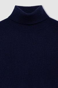 A soft knit turtleneck crafted in midweight, ultra-soft 100% cashmere in midnight blue. - Cashmere - Boxy fit - Short raglan sleeves - Ribbed cuffs and hem - Hand-tacked monogram charm FIT + MEASUREMENTS Boxy Fit: Take your true size, or size down for a closer fit. Model is wearing a size S. Model Measurements: Height: 5'10", Bust: 30", Waist: 24, Hips: 33.5" Product Measurements (Size S): Length: 21.5", Bust: 19.3", Sleeve Length: 16.3" MATERIAL + CARE 100% Cashmere Hand wash Made in China