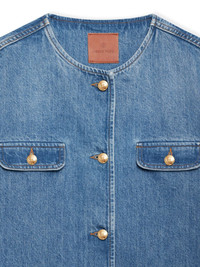 Janet denim jacket Highlights - Washed blue - Organic cotton - Cotton blend - Washed denim - Gold-tone buttons - Collarless - Round neck - Front button fastening - Long sleeves - Four front flap pockets - Straight hem Imported Composition Organic Cotton 50%, Cotton 50% Washing instructions Read Manufacturer Guidelines