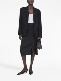 Jolin silk midi skirt Anine Bing's Jolin Skirt is constructed from double-faced silk charmeuse in a black colourway. Its timeless, midi-length silhouette is cut for a close, high-waisted fit and is finished with a high diagonal side slit. Highlights - Black - Silk - High waist - Side zip fastening - Side split - Straight hem Made in Italy Composition Silk 100% Washing instructions Dry Clean Only