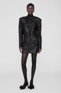The Josephine Top is made from an all-over sequin fabrication with shine and texture in a subtle herringbone design. This eye-catching separate features a mock neckline, non-removable shoulder pads, and is fully lined in a luxurious satin fabrication. Finished with an invisible zipper closure at the back neck and a slightly tapered long sleeve. The Josephine Top is cut for a boxy, loose fit. Take your true size. FIT + MEASUREMENTS The Josephine Top is cut for a boxy, loose fit. Take your true size. Model is wearing a size S. Model Measurements: Height: 5'9", Bust: 30", Waist: 23", Hips: 34" Product Measurements (Size S): Length: 27", Bust: 43", Sleeve Length from Center Back: 35" MATERIAL + CARE 95% Polyester, 5% Spandex Machine wash Made in China