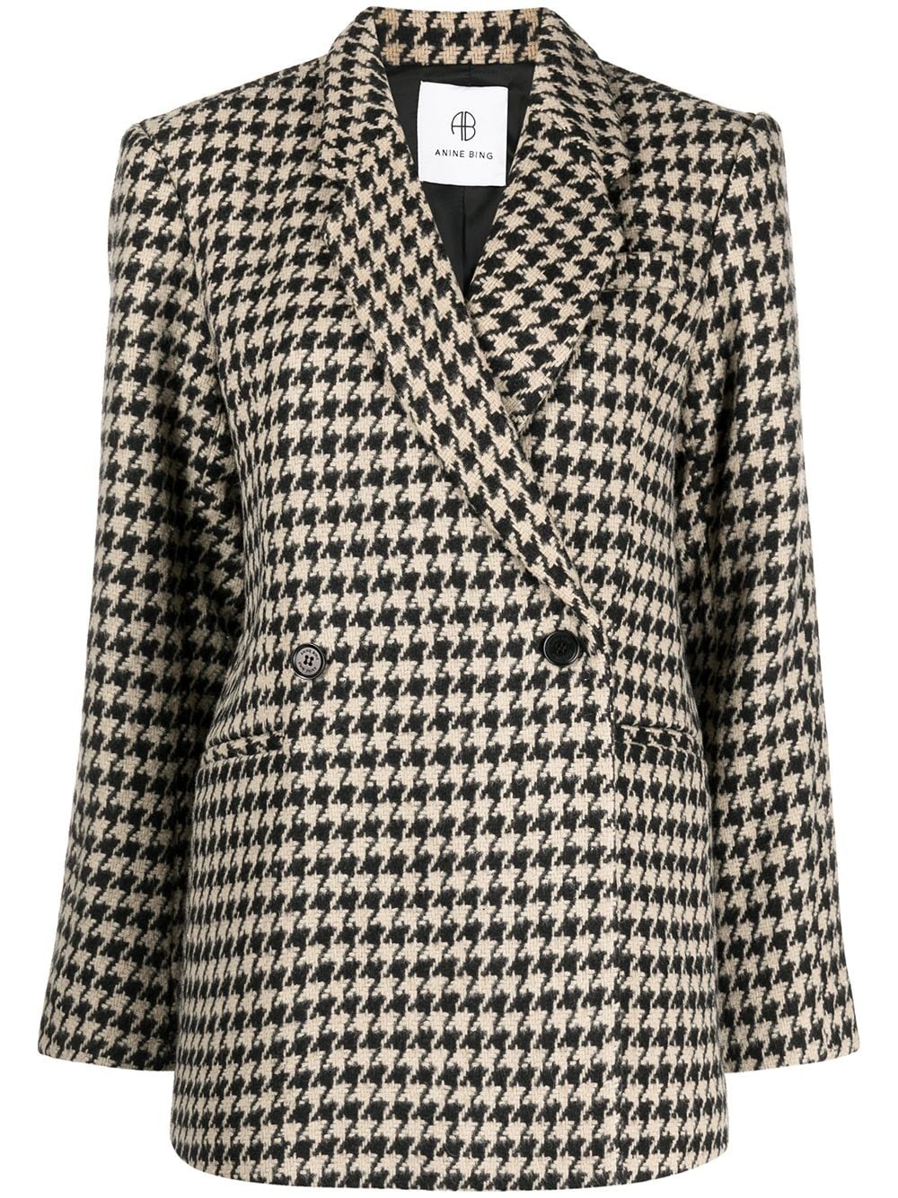 Kaia check-pattern blazer Highlights - Black/off-white - Wool blend - Stretch-design - Check pattern - Rear slit - Notched lapels - Double-breasted button fastening - Chest welt pocket - Two front jetted pockets - Long sleeves - Buttoned-cuff sleeves - Straight hem Imported Composition Wool 58%, Polyamide 21%, Viscose 10%, Polyester 10%, Elastane 1%