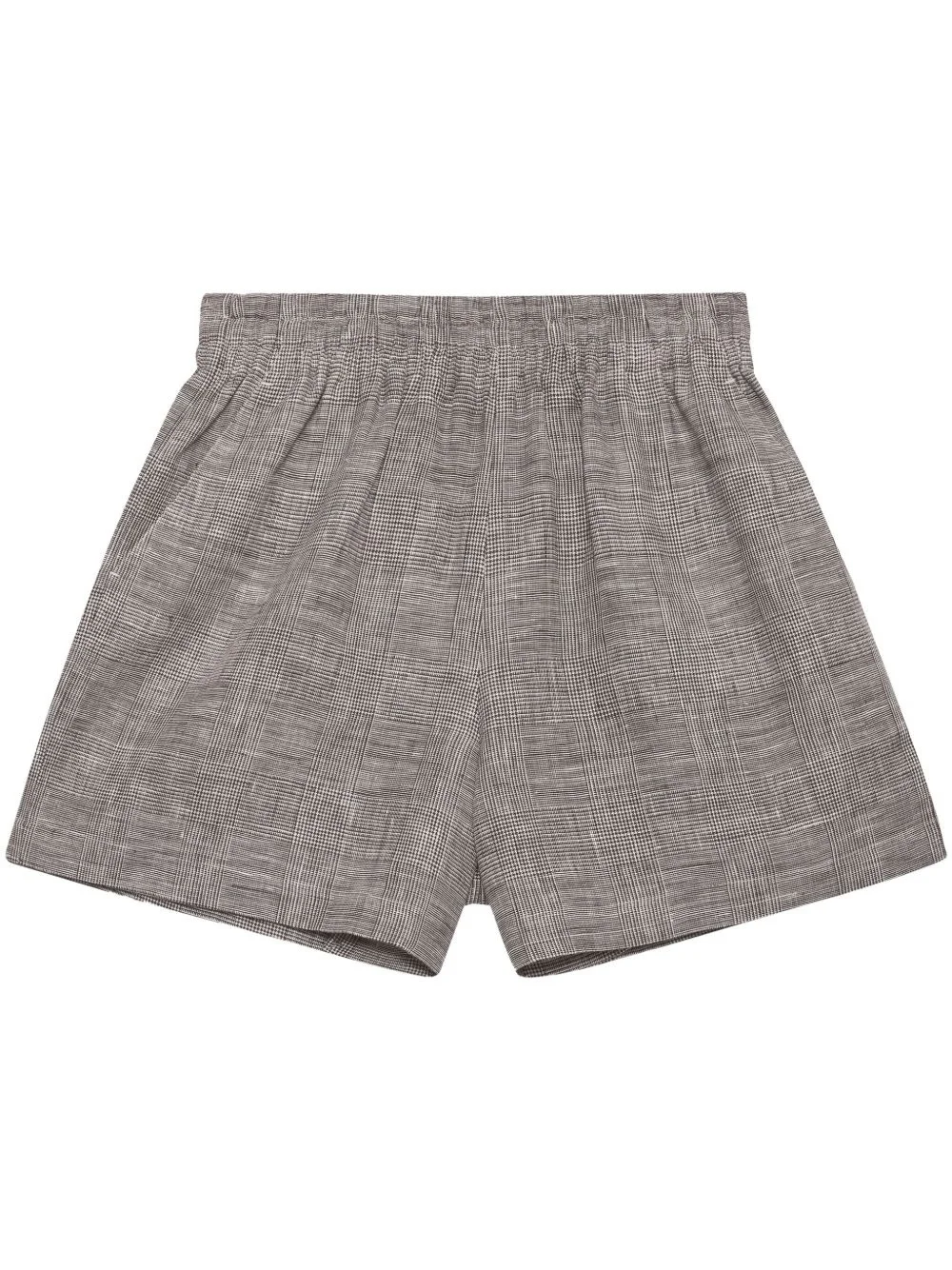 check-print linen shorts Highlights - Brown plaid - Linen/flax - Check print - High-rise - Wide leg - Elasticated waistband - Slip pockets to the sides - Two rear jetted pockets - Thigh-length - Slip-on style Imported Composition Linen/Flax 100% Washing instructions Hand Wash