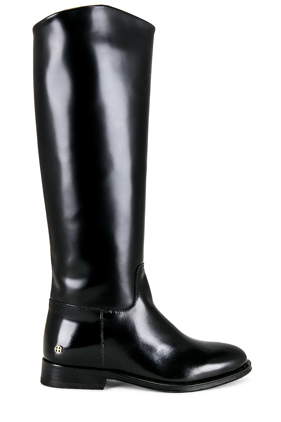 - Smooth leather upper with leather sole - Made in Portugal - Pull-on styling - Gold-tone logo plaque at heel - Almond toe - High-shine finish - Approx 25mm/ 1 inch heel Approx 406mm/ 16 inch shaft Shaft measures approx 20.41" in circumference - Revolve Style No. ANIN-WZ101 - Manufacturer Style No. A-14-1187-050