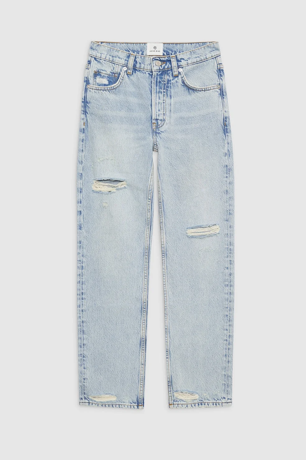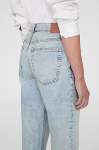 The Kate Jean is constructed from midweight rigid regenerative cotton denim without stretch in a destructed bleached blue wash with vintage-inspired grinding, hand sanding, and highs and lows throughout. - Regenerative cotton denim - Mid rise - Button-fly closure - Straight leg - Ankle-length inseam - Clean-edge hem FIT + MEASUREMENTS Mid Rise Straight: Take one size up for a true fit. Model is wearing a size 25. Model Measurements: Height: 5'9.5", Bust: 32", Waist: 24.5", Hips: 33" Product Measurements (Size 27): Inseam: 29", Rise: 10.8", Waist: 30", Hip: 39", Leg Opening: 15" MATERIAL + CARE 100% Cotton Machine wash separately Made in Turkiye