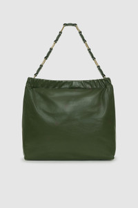 A shoulder bag constructed from smooth olive green leather with a subtle sheen. - Leather - Top-zip closure - Removable interlocked link strap in gold-tone hardware - Fully lined cotton-twill interior - One interior zipper pocket - One interior slip pocket - Embossed ANINE BING monogram at the front FIT + MEASUREMENTS Model is wearing a size OS. Model Measurements: Height: 5'9.5", Bust: 32", Waist: 24.5", Hips: 33" Product Measurements: Height: 14.3", Width: 17.1" MATERIAL + CARE 100% Lamb Leather Spot clean Made in Turkiye