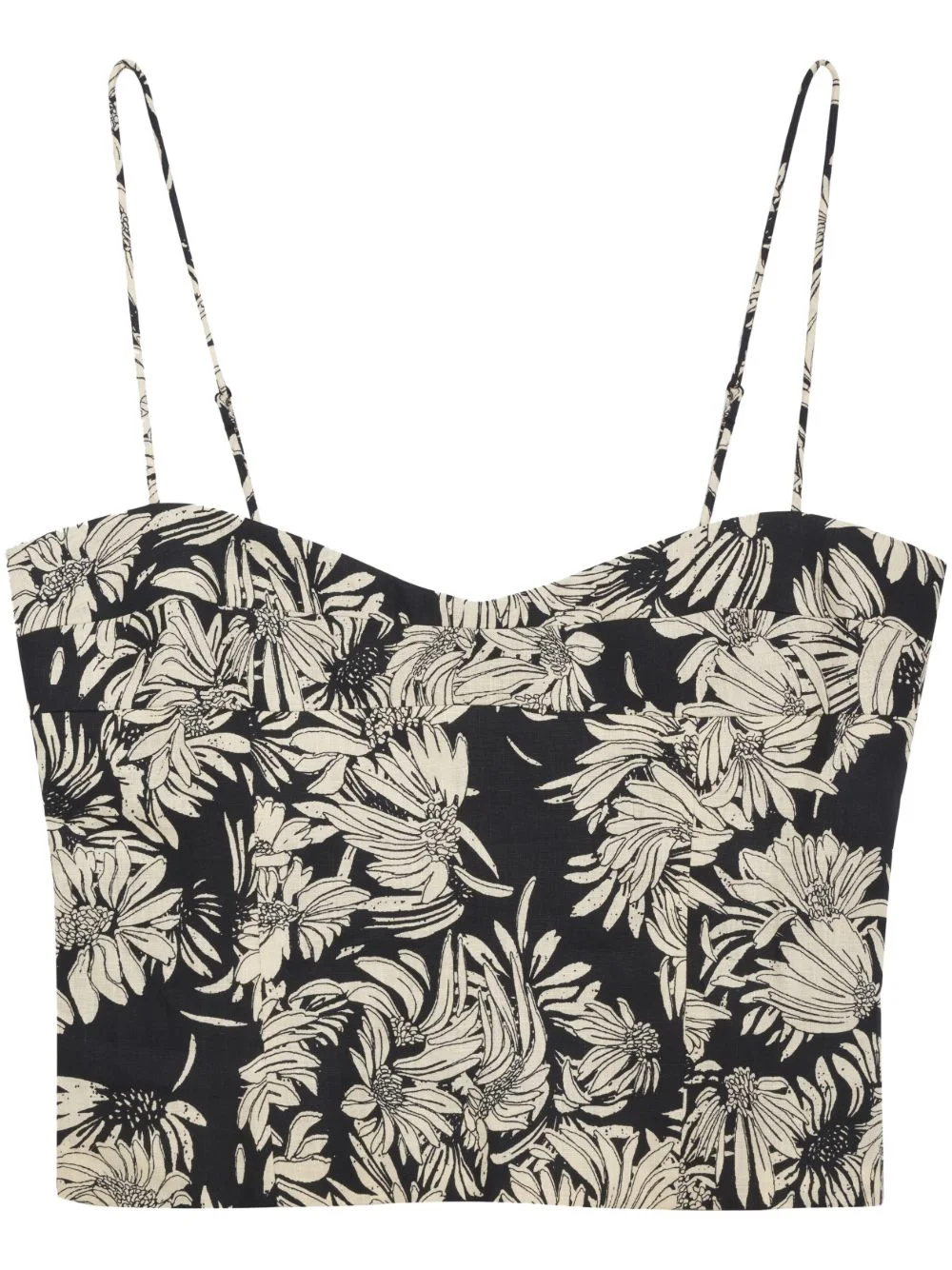 Keiran floral-print sleeveless minidress Annie Bing continues to express its affinity for effortless femininity, as shown on this spaghetti-strap dress. Scattered with pastel yellow blooms, the black design is secured with a concealed rear zip fastening. Highlights - Black/yellow - Linen/flax - All-over floral print - Adjustable spaghetti straps - Square neck - Concealed rear zip fastening - Thigh-length - Straight hem Imported Composition Linen/Flax 100%