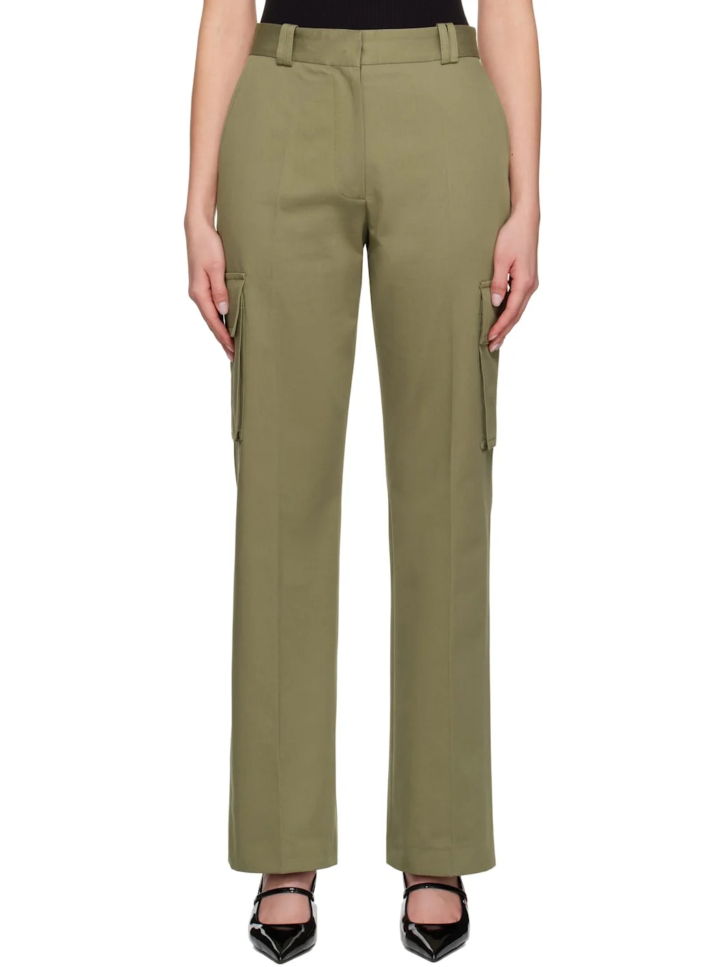 Straight-leg cotton twill cargo pants. · High-rise · Belt loops · Four-pocket styling · Zip fly · Creased legs · Bellows pocket at outseams Supplier color: Army green 100% cotton. Made in Portugal 251092F087006