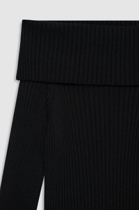 This off-the-shoulder sweater pairs a flattering neckline with a wool blend fabric, complete with long sleeves for a refined feel. FIT + MEASUREMENTS Model is wearing a size S. Model Measurements: Height: 5'9", Bust: 30", Waist: 23, Hips: 33" Product Measurements (Size S): Length: 25", Bust: 7.4", Sleeve Length from Center Back: 21.5" MATERIAL + CARE 62%Wool 36%Polyester 2%Acrylic Hand wash Made in China
