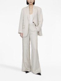 Lyra wide-leg trousers Reflecting the brand's minimalist aesthetic for AW23, Annie Bing presents these trousers. Characterised by wide-leg silhouette, the off-white hue adds a timeless feel to the garment. Highlights - Off-white - High waist - Concealed front fastening - Belt loops - Two side slit pockets - Wide leg Imported Composition Lyocell 35%, Rayon 33%, Linen/Flax 32% Washing instructions Machine Wash