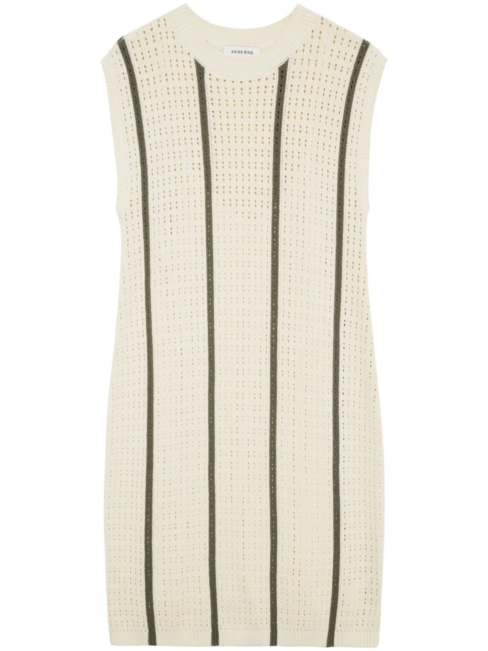 Lanie open-knit minidress Highlights - Ivory white/olive green - Cotton - Open knit - Vertical stripe pattern - Round neck - Sleeveless - Straight hem - Thigh-length Imported Composition Cotton 100% Washing instructions Read Manufacturer Guidelines