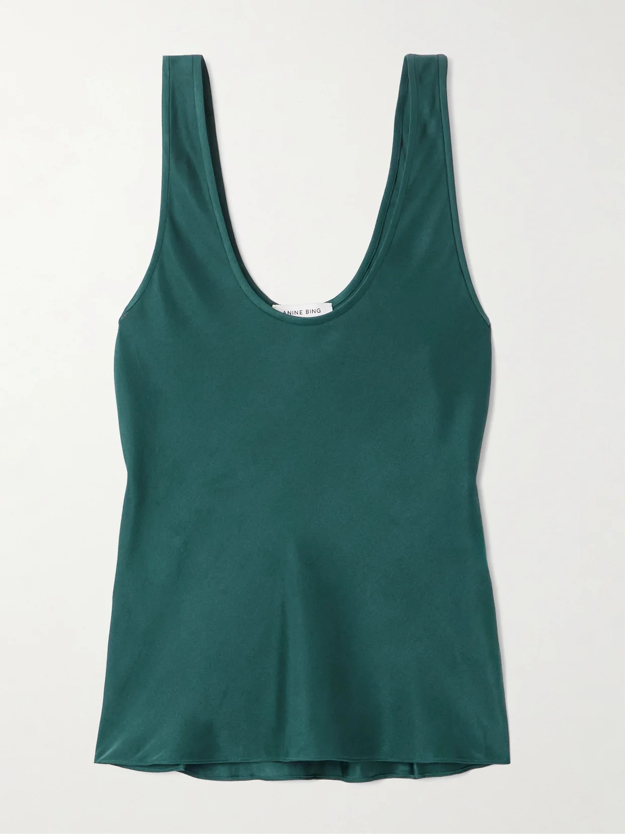 Anine Bing's 'Lea' tank is cut from lustrous silk-satin in a jewel-toned emerald shade. Designed for a slim fit with a scoop neckline and back, it tucks effortlessly into both skirts and pants.
