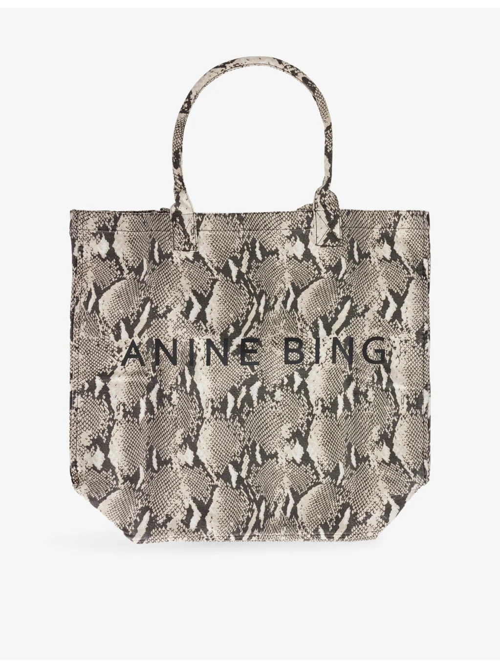 PRODUCT DETAILS - ANINE BING cotton tote bag - 100% cotton - Double top handles, brand print at front, all-over python print, all-over canvas texture, one main compartment - Height 46cm, width 64cm, depth 16cm, handle drop 22cm - Machine wash at 30°C - Made in Turkey Ref: R04573043